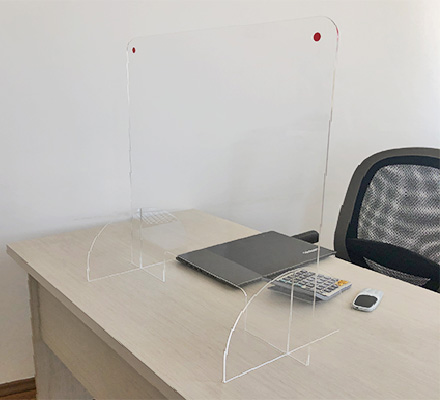 Panoul de protectie este realizat din plexiglas transparent de 3 mm si este foarte practic. Panoul este foarte usor de asamblat si transportat fiind demontabil. Panoul de protectie este format din 3 elemente: panoul frontal si cele doua picioare de sustinere. Aceste panouri sunt utile pentru protectia angajatilor cat si a clientilor companiei dumneavoastra. Este recomandat atat pentru spatiile comerciale in zona caselor de marcat si a punctelor de informare (benzinarii, magazine, farmacii etc.) cat si a punctelor de lucru cu public (receptii clinici medicale, administratii de bloc, banci sau alte companii)